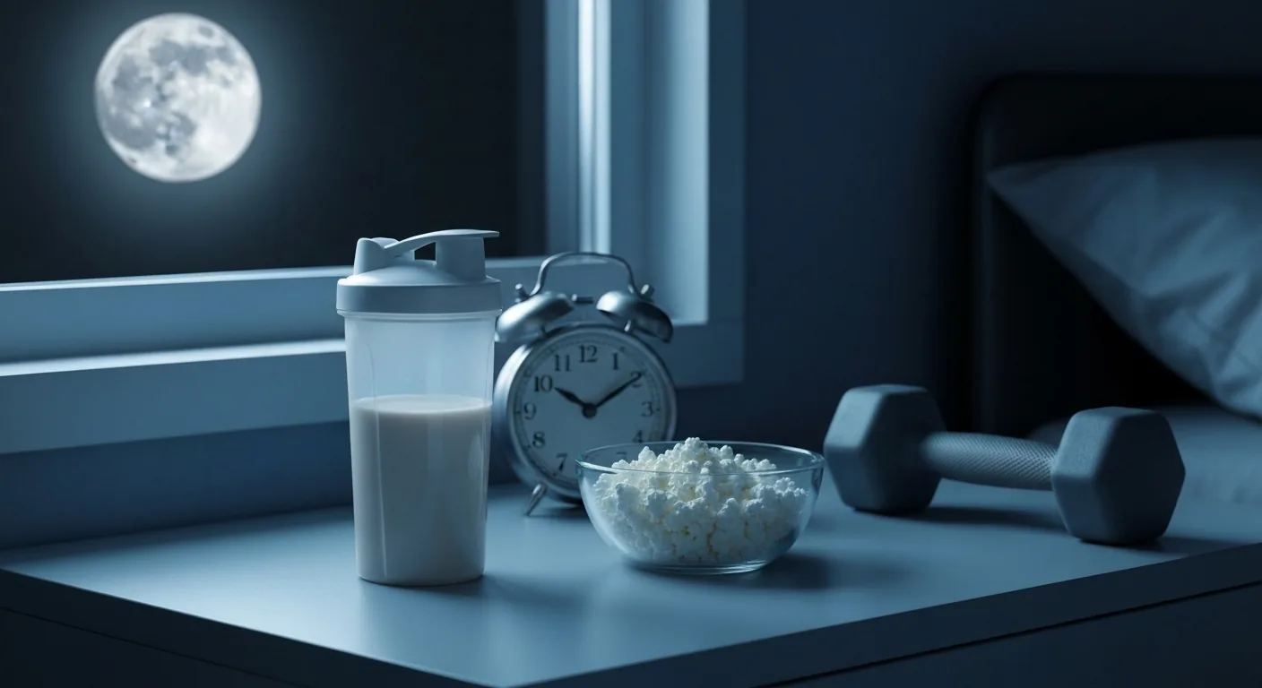 Étude clé : 40g de caséine avant le coucher → +22% de synthèse protéique nocturne + 3,2 kg de masse musculaire supplémentaire sur 12 semaines vs placebo (Snijders et al., 2015, Medicine & Science in Sports & Exercise).